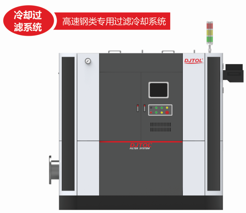 主要针对加工材料为高速钢的各类磨床,加工中心等废料中含铁等粉末形式的高速钢杂质和砂轮灰的高效过滤处理。根据高速钢工量刃具磨削实际生产需要的信息反馈,我们推荐双循环多级高速钢过滤冷却系统:采用先进技术的磁力机和密封性能结构最好的压力桶,再经过高速钢过滤专用滤芯过滤桶实现高速钢粉末高精度过滤,最后经过高分子滤芯处理砂轮灰的μ级颗粒;多级的处理结构,使滤芯处理效果更高效,过滤更彻底。